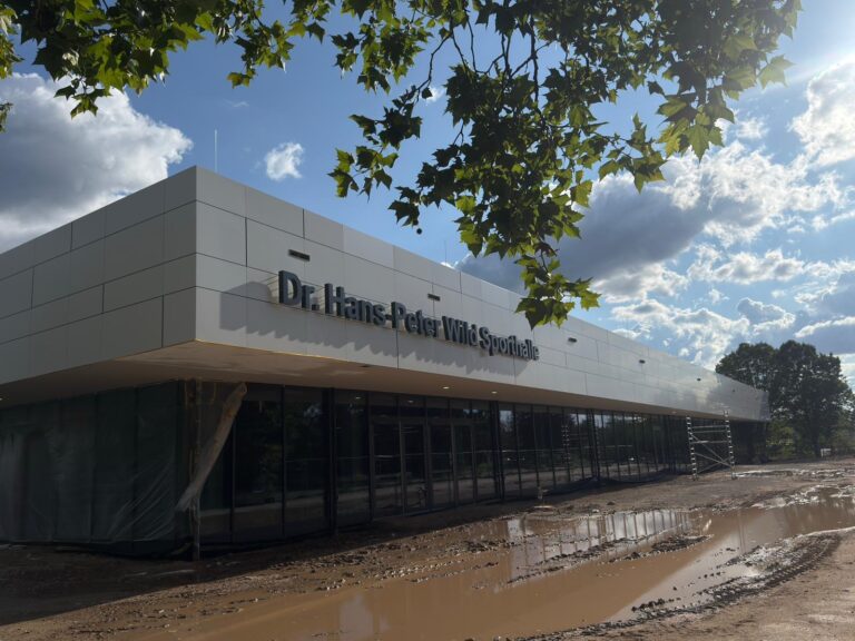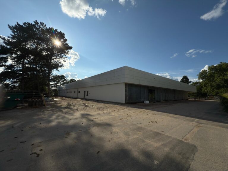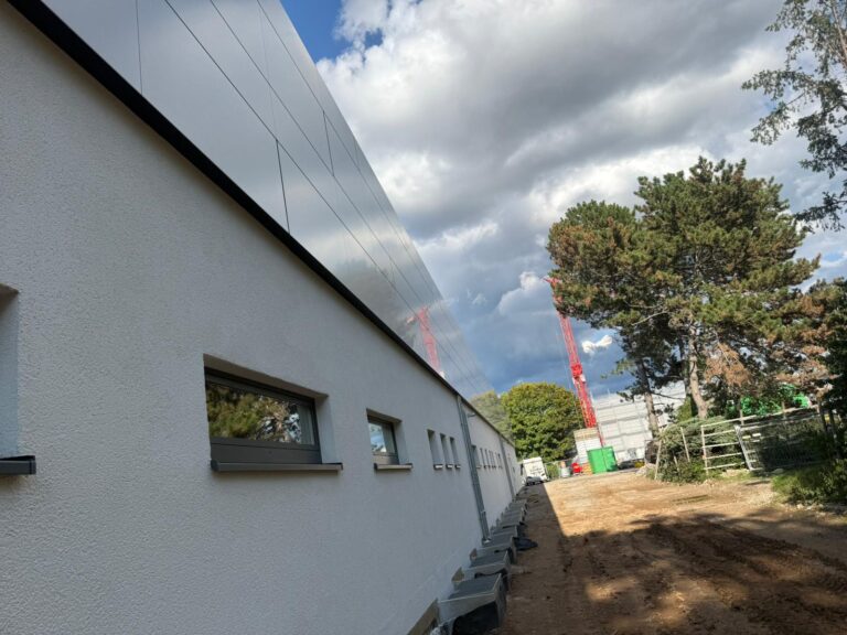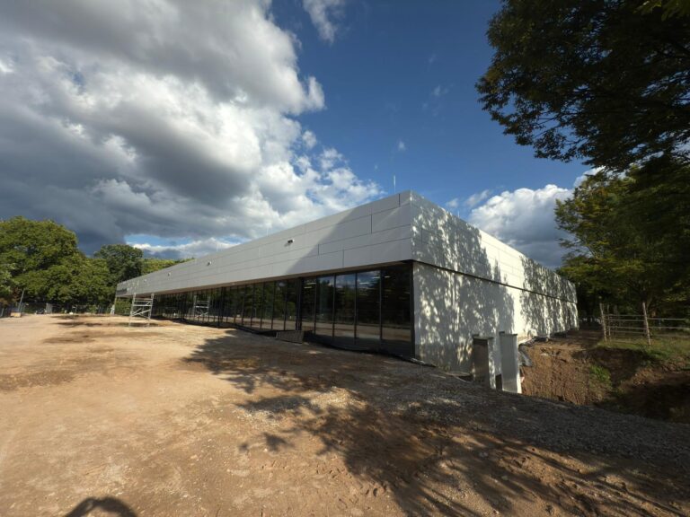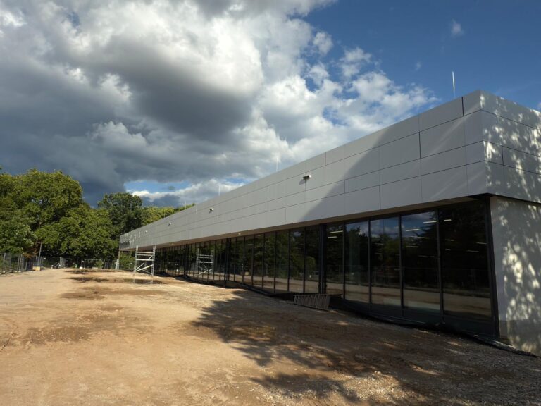 An diesem modernen Sportkomplex wurde eine vorgehängte hinterlüftete Fassade aus hochwertigem Alucobond mit einem fortschrittlichen Klebesystem realisiert. Die Arbeiten wurden im Zeitraum von April bis Juli 2025 ausgeführt und verbinden modernes architektonisches Design mit höchsten technischen Standards im Fassadenbau.