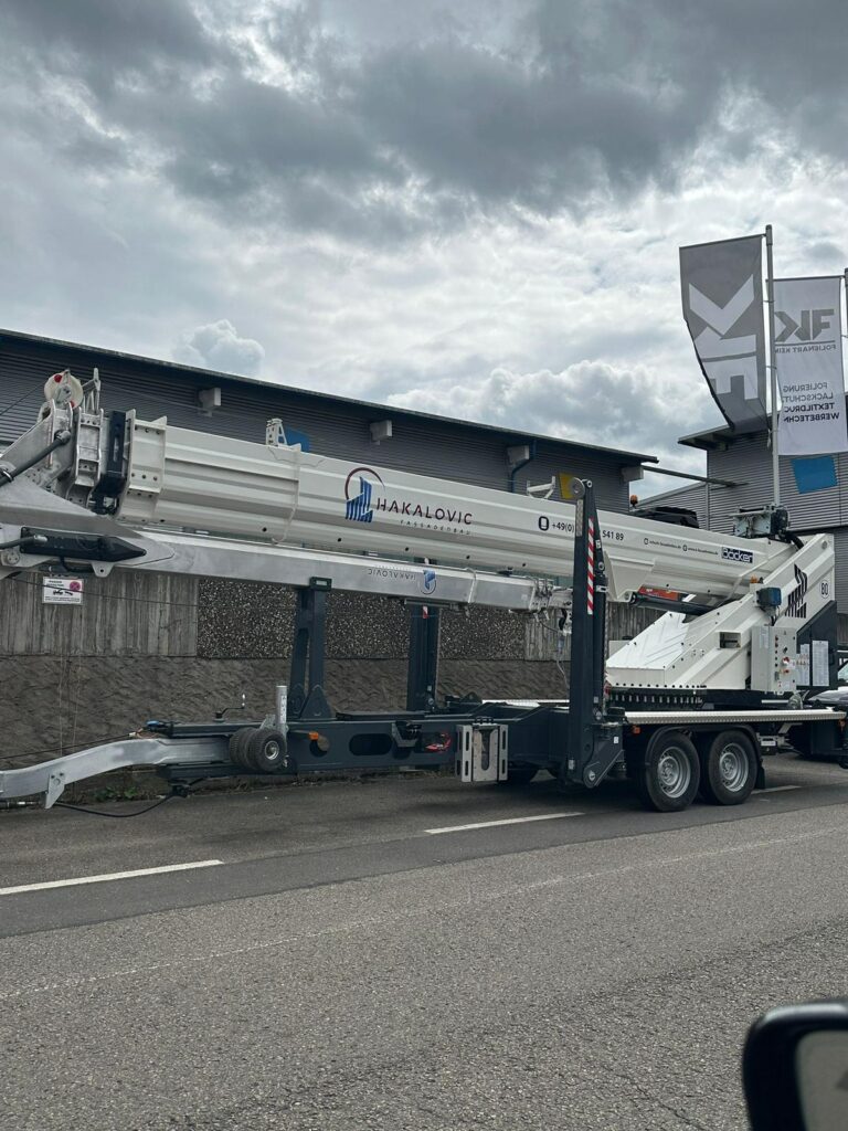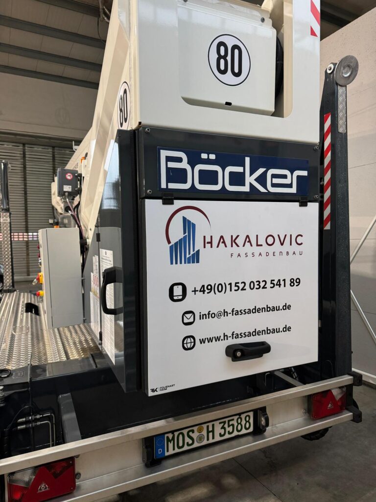 Die Firma Hakalovic Fassadenbau verfügt über einen eigenen Anhängerkran AHK 36 Böcker mit Arbeitskorb, was uns maximale Flexibilität, schnellere Projektabwicklung und sicheres Arbeiten in Höhen bis zu 36 Metern ermöglicht – ganz ohne zusätzliche Mietkosten für Fremdgeräte.